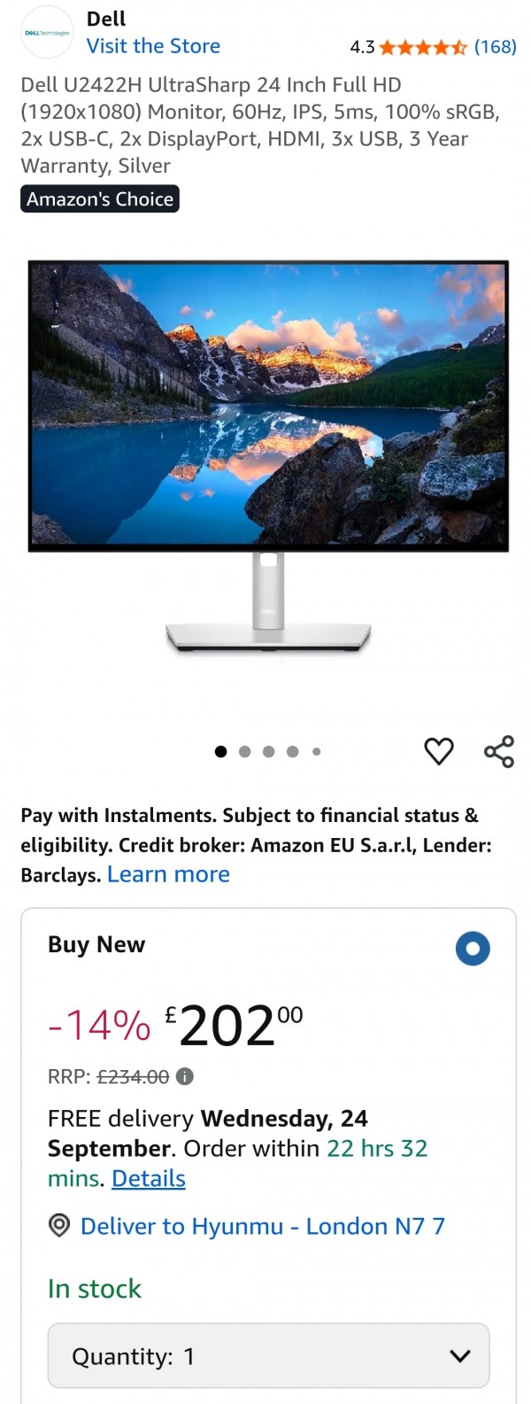 모델명: U2422H - Dell Ultrasharp 24 Monitor