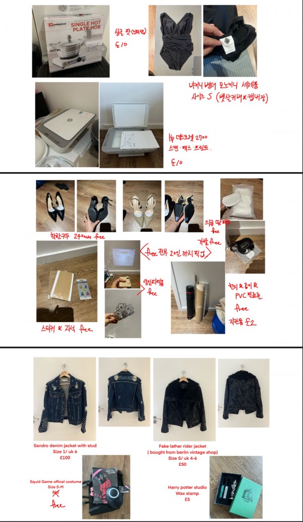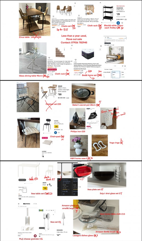 가구 등은 Canning town 역에서 5분 거리 아파트로 픽업 와주셔야하고 나머지 물품은 상의 후 직거래 가능합니다!