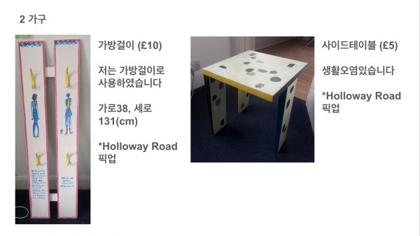 그 외 생활용품은 holloway, camden, highbury&islington 부근에서 거래 가능합니다.