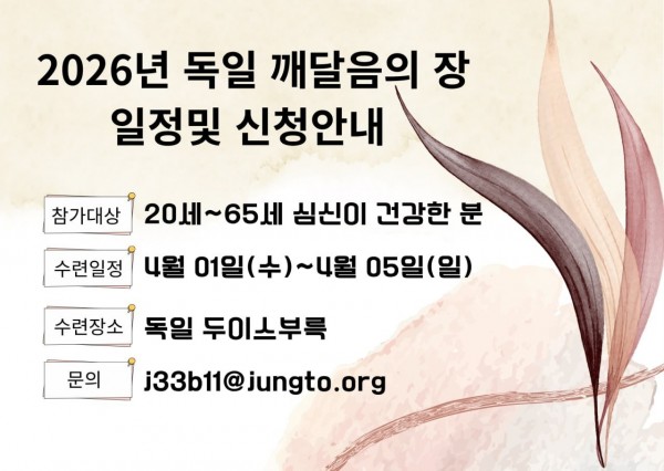 2026년 독일 깨달음의 장 수련일정 및 접수안내