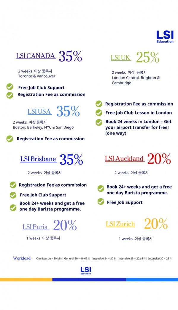 저렴한 그룹학교 LSI 2분기 프로모션과 4월 국적 비율 (20% 학비 할인)