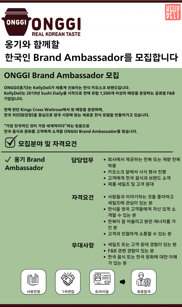[켈리델리] KellyDeli Korean Brand 옹기(Onggi) Brand Ambassador / Sales Staff…
