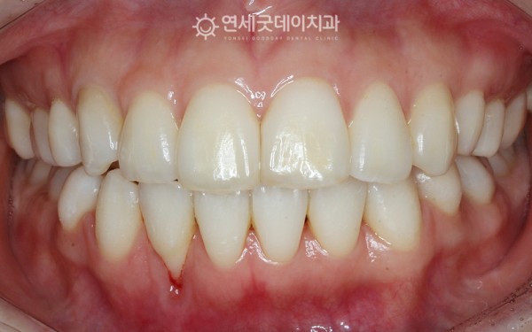 ●영국사랑 공식 협력병원, 연세굿데이치과● 잇몸퇴축, 아랫니 부분교정 치료전후 – 30대 여성, 치주교정