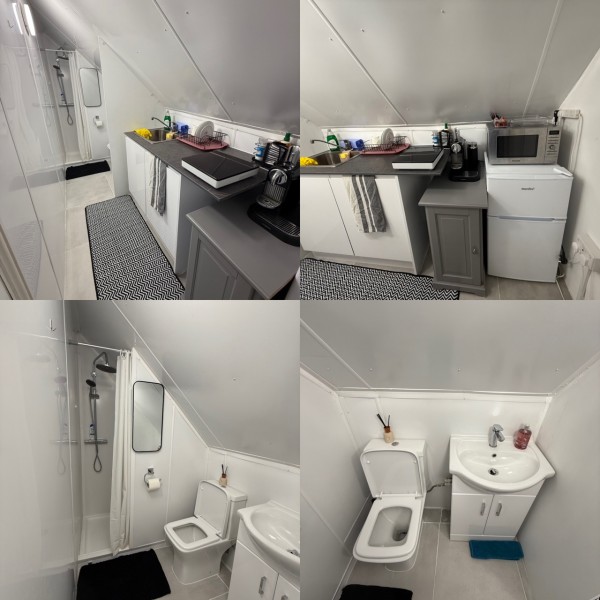 방 다른 공간에 화장실 샤워 부엌 세탁기 (새것) 구비되어 있습니다. (사진에는 나와있지 않은데 사진찍은 후에 세탁기 설치하였습니다.)