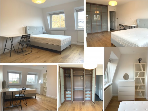 방: 집에서 제일 크고 ensuite 화장실이 따로 방 안에 있는 2층 방. 집 뒤쪽 가든을 보고있어서 밖에서 들여다 보일 걱정 없는 아주 조용한 방 입니다. Ensuite 화장실에는 욕조, underfloor heating, 파워샤워, heated towel rail 등 있습니다. 암막 블라인드 설치 되어있습니다.