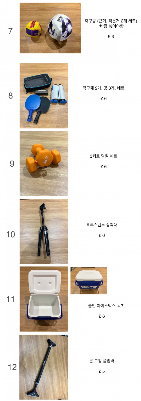 귀국 전 짐정리 (런던) / 커피머신 / 믹서기 / 와이파이 공유기 / 책상용 전등 / 이케아 조명 / 드라이기 / 축구공 / 탁구채 / 덤벨 / 삼각대 / 아이스박스 / 풀업바 > 생활용품