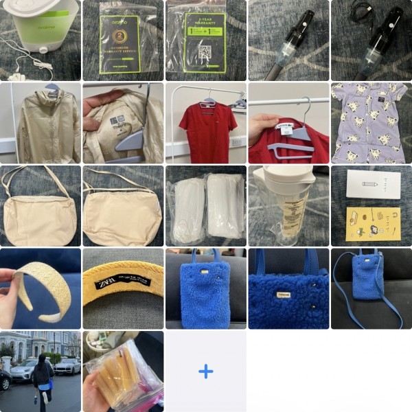 짐정리(가습기, 미니청소기, 옷, 가방, 마스크, 물병, 책, 머리띠, 샤워기필터)