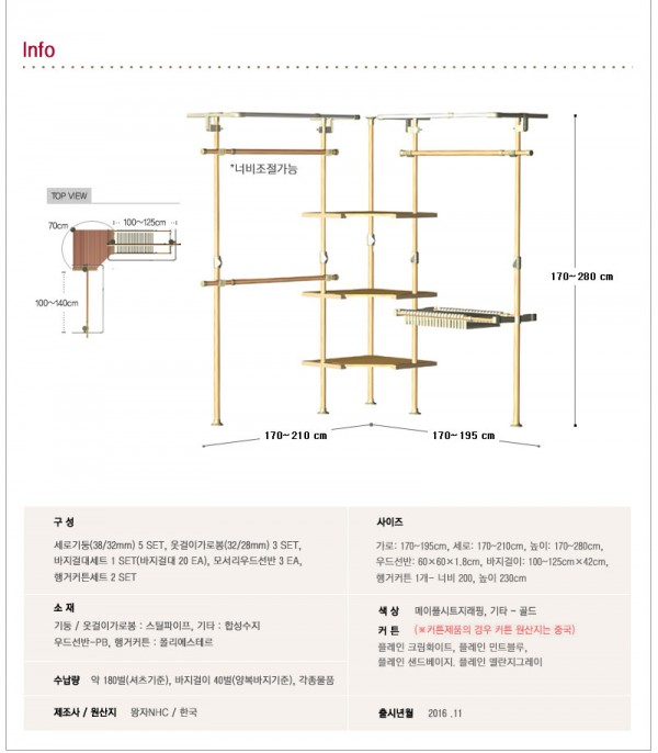 아래 설명서 사진에 있는 바지걸이 대신 긴 수납공간이 있습니다.