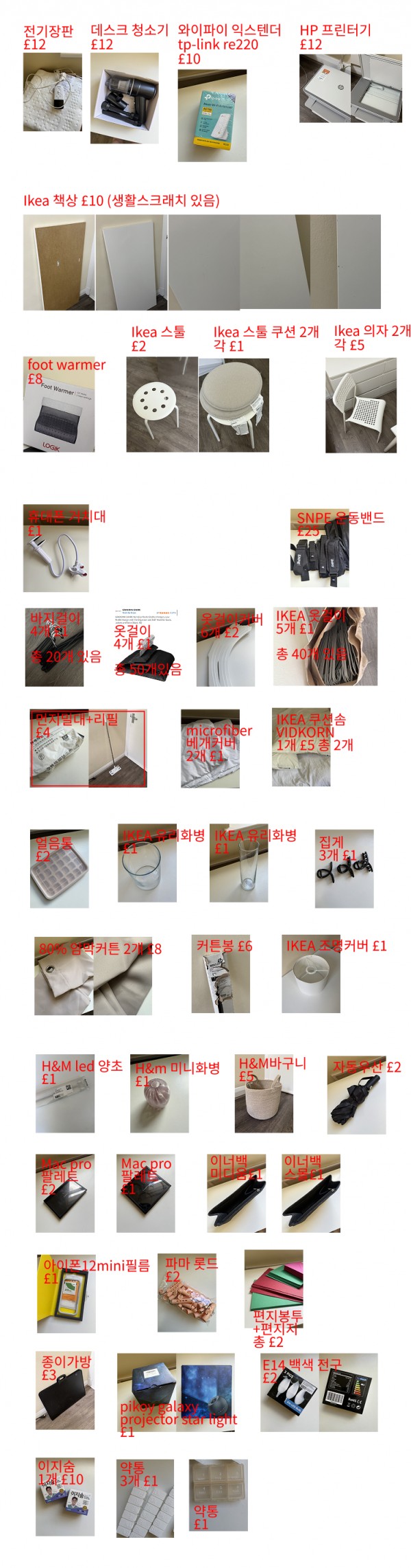 (런던) 귀국짐 정리합니다. (밥솥,체중계,청소기,커피머신,신발장,조명,와이파이 공유기,건조대,옷걸이,덤벨,쓰레기통,그릇 등등)
