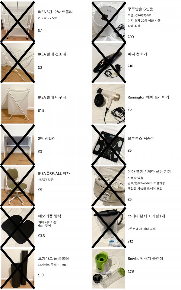 추가물품 : 행잉 열쇠 보관함(£3.5), 스테인리스국자(£1.5), 주방가위(£0.5)