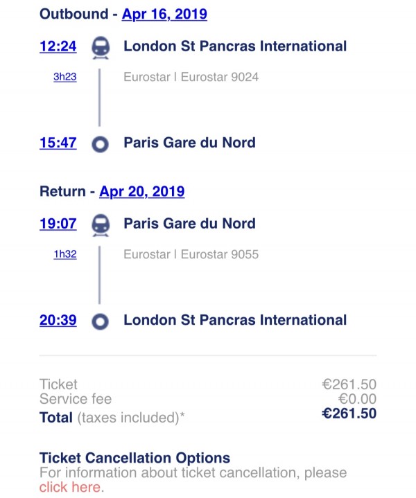 유로스타 런던-파리 왕복티켓 팝니당 (1장)- 4.16~4.20